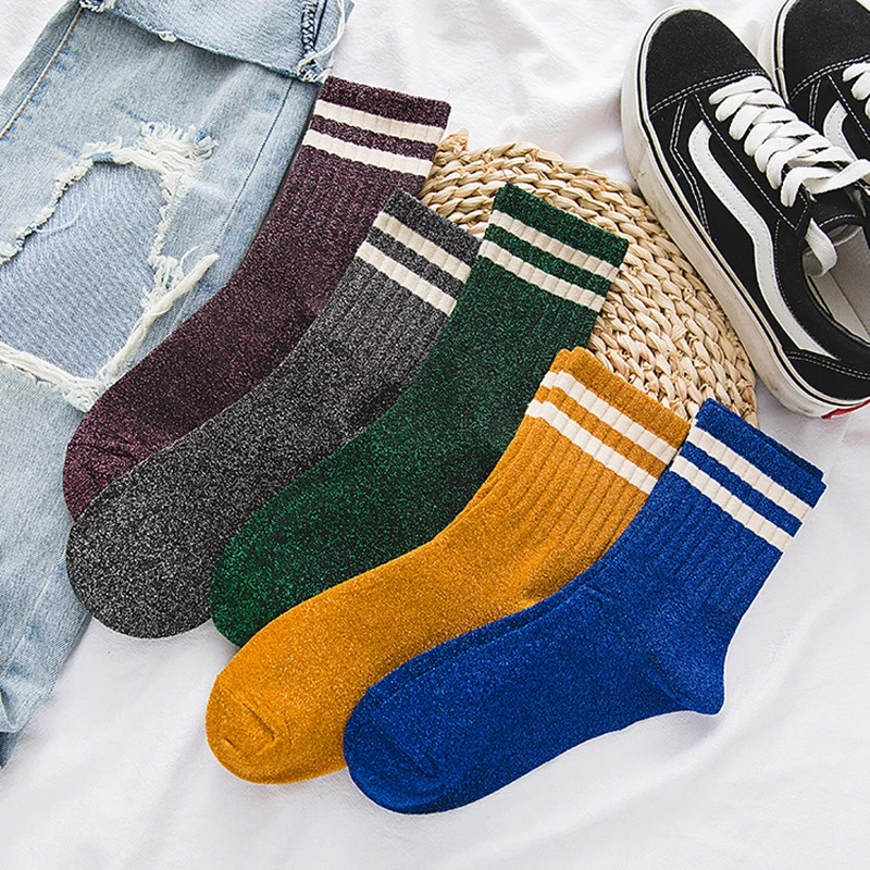 Chaussettes Ă rayures brillantes pour femmes, Streetwear, tendance, Rock Roll, couleur vive, mignon, Kawaii, hiver