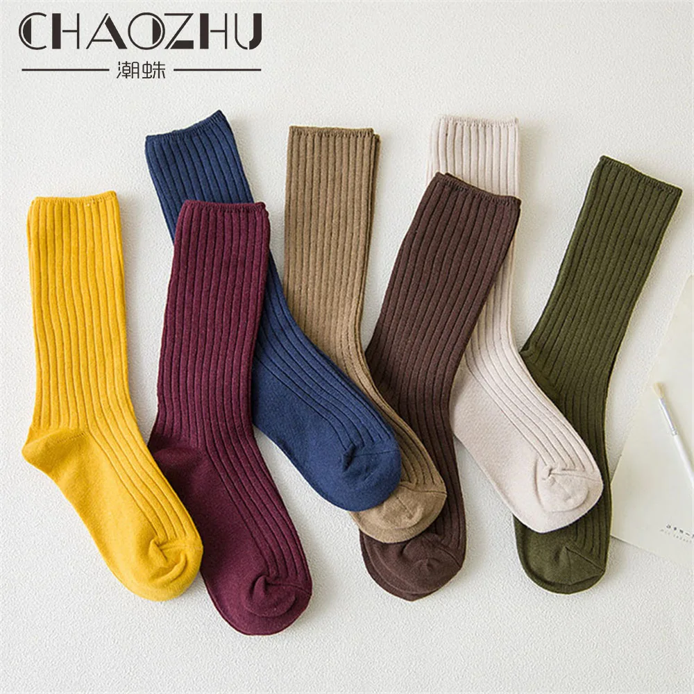 10 couleurs automne nouvelles femmes chaussettes coton hiver longues chaussettes Harajuku femme tour chaud couleur unie chaussette décontracté dames Sox
