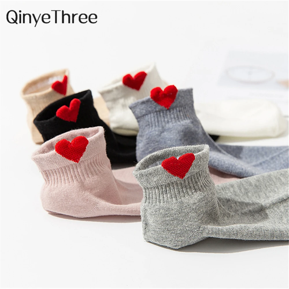 INS nouveau mignon 3D rouge amour coeur cheville chaussettes femmes drôle heureux été frais littéraire couleur unie collège Style court Sokken