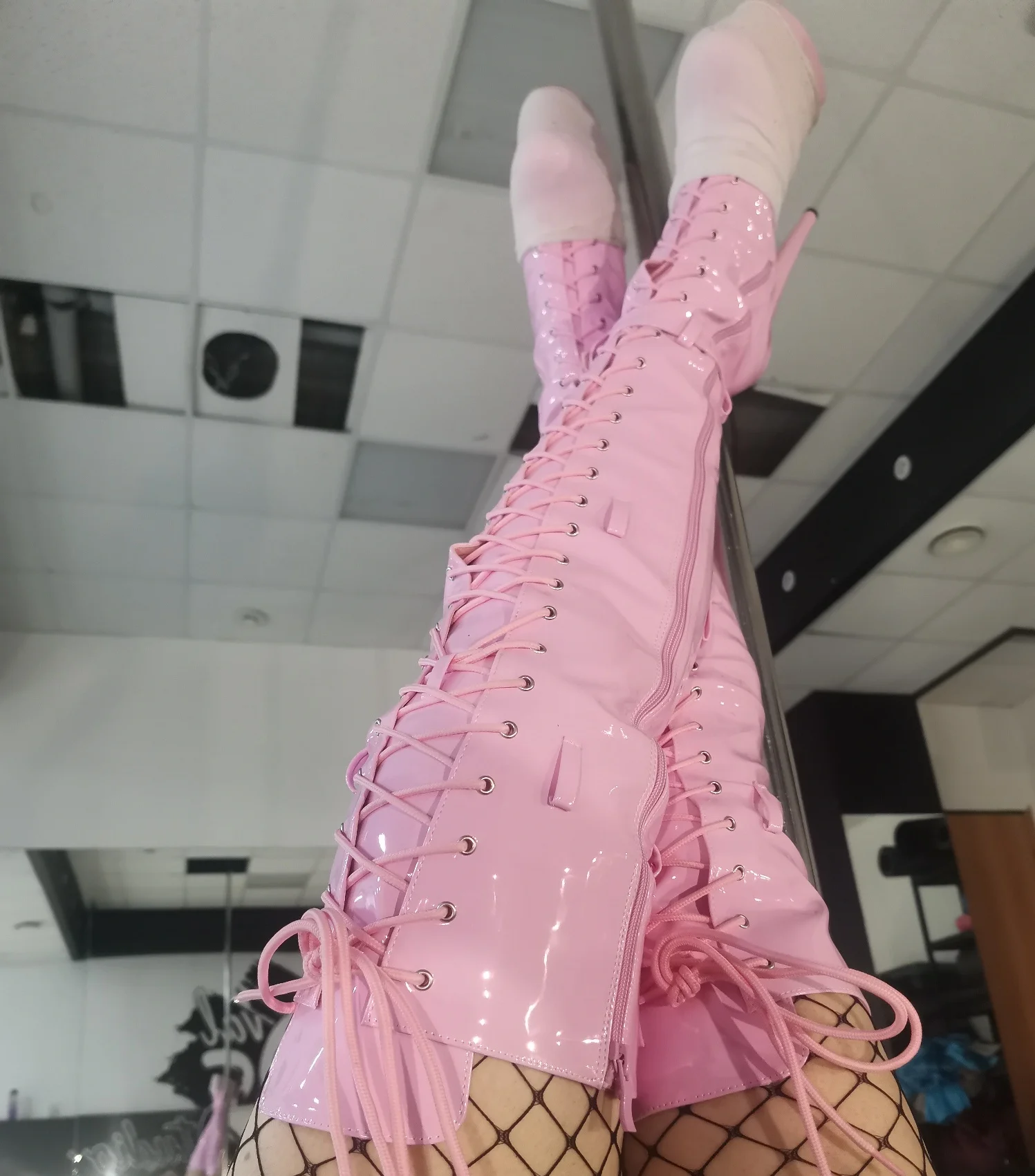 Talons hauts roses de 12 à 23cm, réglage de la taille de la boucle, danseuse à tête ronde, performance de piste sexy à la mode, bottes aux cuisses