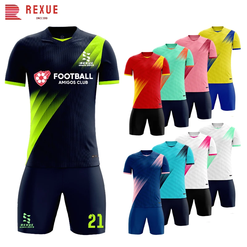 Ensembles de maillots de football personnalisés pour hommes, femmes et enfants, uniforme de football à impression à séchage rapide, blanc à sublimation, manches courtes, imbibé, 2023