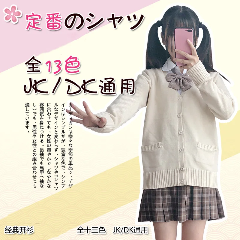 Pull scolaire japonais en coton tricoté à col en V pour filles, cardigan multicolore, uniformes JK, cosplay étudiant, printemps et automne, 100%