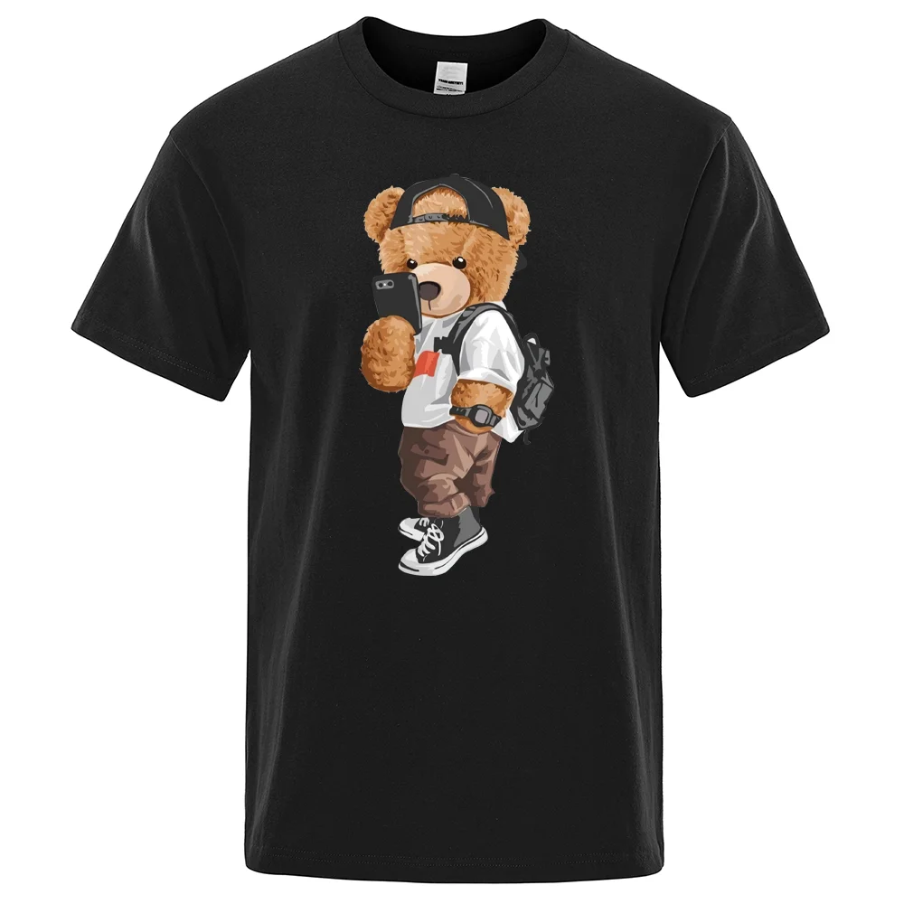 T-shirt manches courtes col rond homme et femme, humoristique et à la mode, en pur coton, Ted Bear, été 2024