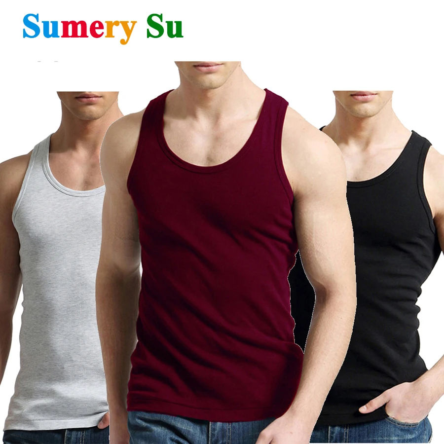 Débardeurs hommes Fitness Cool été 100% coton gilet mâle hauts sans manche gymnase mince maillot de corps décontracté hommes cadeau 10 couleurs 1 pièces