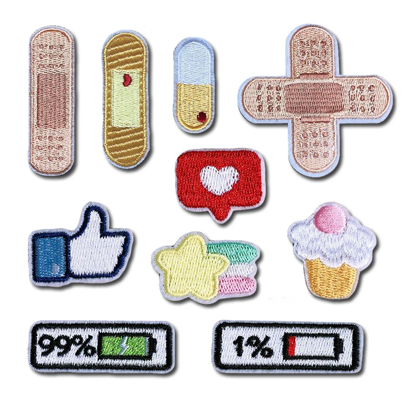 Patch de bande de gâteau à batterie mignon, dessin animé entièrement brodé pour vêtements d'enfants, décoration de chaussures et chapeaux, trous de patch