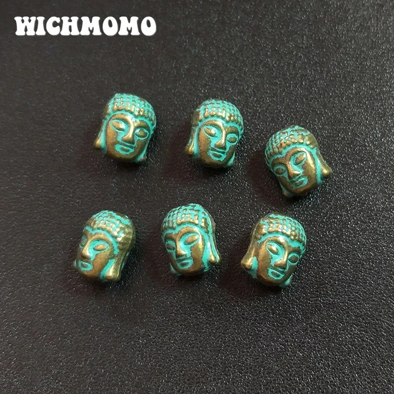 Breloques tête de bouddha vert en alliage de Zinc, 10 pièces/lot, breloques antiques de 10MM adaptées aux bracelets et colliers, fabrication artisanale, accessoires de bricolage