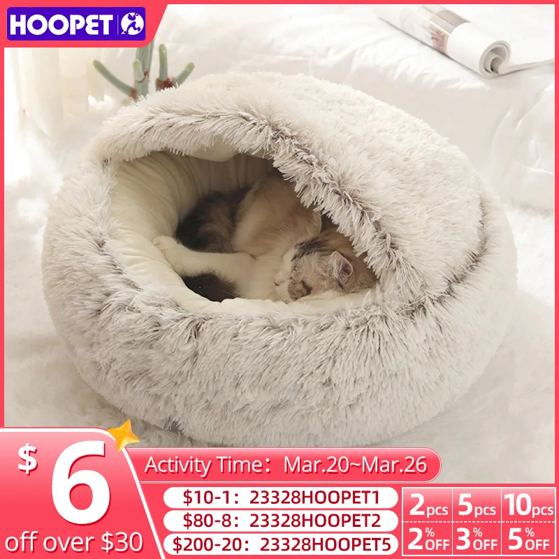 HOOPET-Nouveau style Lit pour chien et chat Coussin rond en peluche Maison de Chaleureux chaude pour chat Lit en peluche doux et long pour petits chiens Nid de chat Lit pour chat 2 en 1