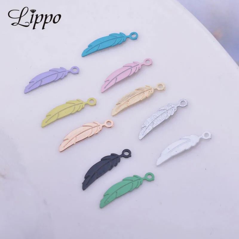 Mini breloques en forme de plumes en laiton, pendentif, 3x12 mm, lot de 100 pièces, AC10375