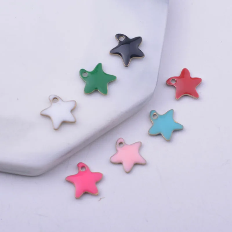 Breloques étoile de mer émaillées en cuivre de 10mm, 30 pièces, pour boucle d'oreille, collier, pendentif en émail