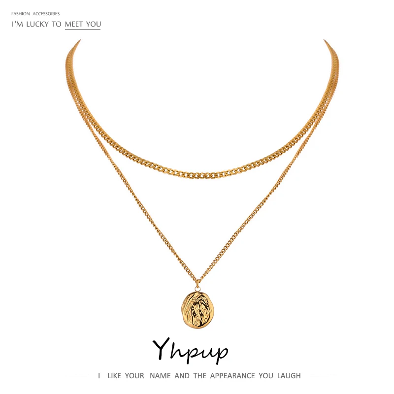 Yhpup 316L acier inoxydable collier superposé femmes Bijoux déclaration métal Texture géométrique pendentif Bijoux Femme étanche