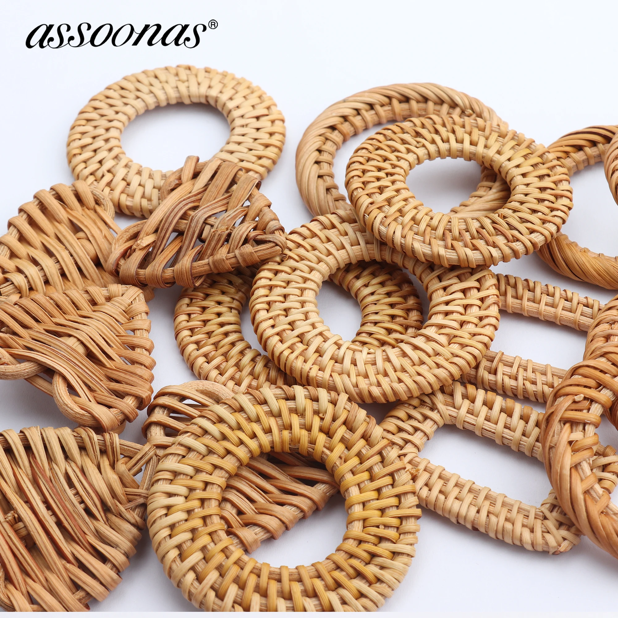 Assoonas, accessoires de bijoux M752, pendentif en rotin de bambou, fait à la main, breloques, boucles d'oreilles de bricolage, résultats de fabrication, 10 pièces/lot
