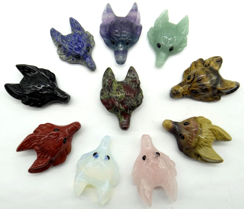 Pendentif en forme de tête de loup pour la fabrication de bijoux à bricoler soi-même, pierre naturelle, cristal de quartz, œil de tigre, aventurine, accessoires de collier, fluorite, 2 pièces