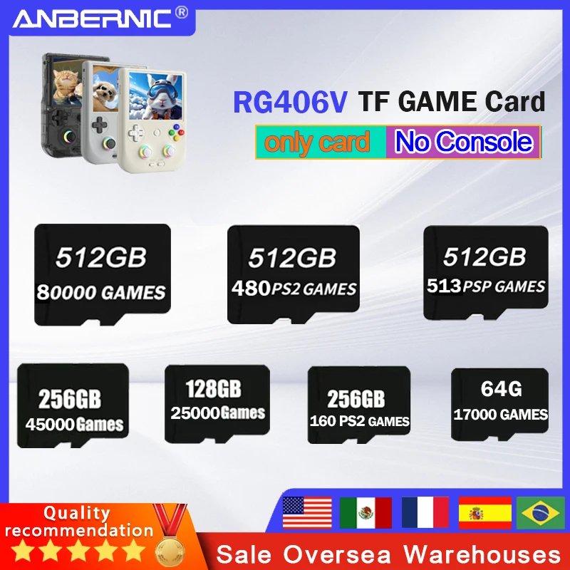 Pour ANBERNIC RG406V TF carte de jeu Console de jeux vidéo PSP pré-installation jeux rétro RG 406V carte mémoire 512G 80000 jeu