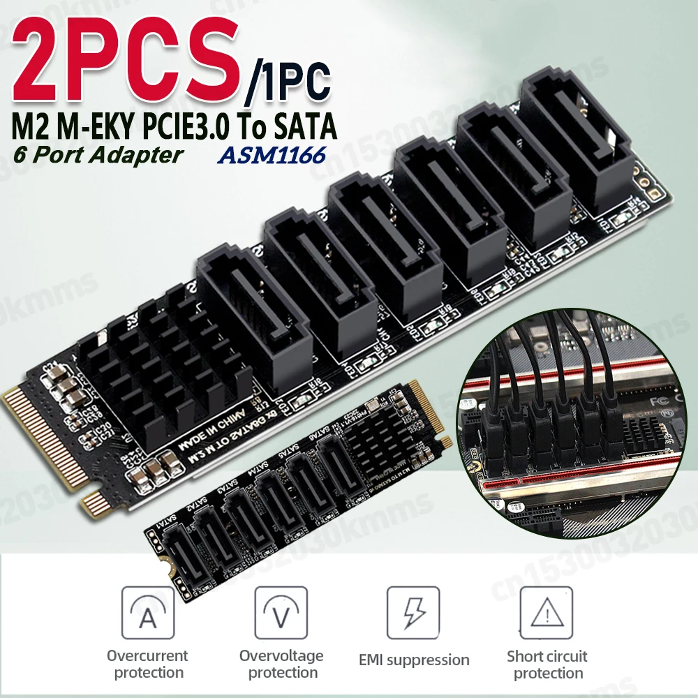 Carte adaptateur M.2 NVcloser PCI-E PCIE Tage X8 X16 à 6 ports 3.0 SATA, Riser III ASM1166 6 GB/S, châssis pour serveur PC, 6 000, 1 pièce