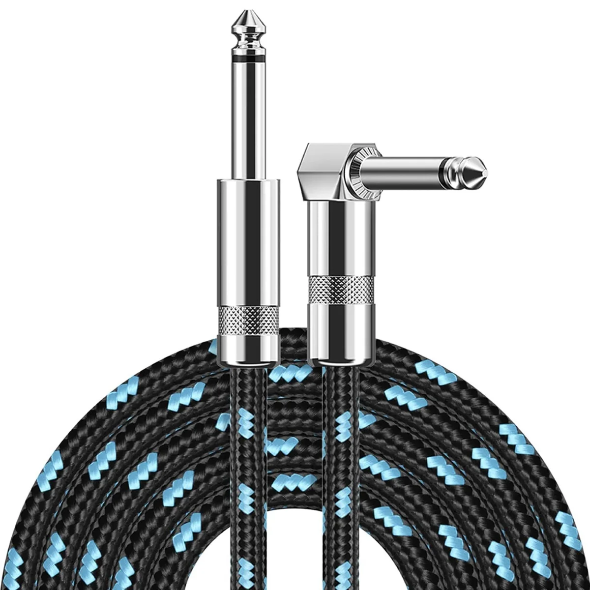 Câble de guitare électrique tressé, Jack 1/4 pieds, 90 degrés TS 6.5mm, câble Audio Mono, boîte électrique basse, câble Audio, câble de réduction du bruit