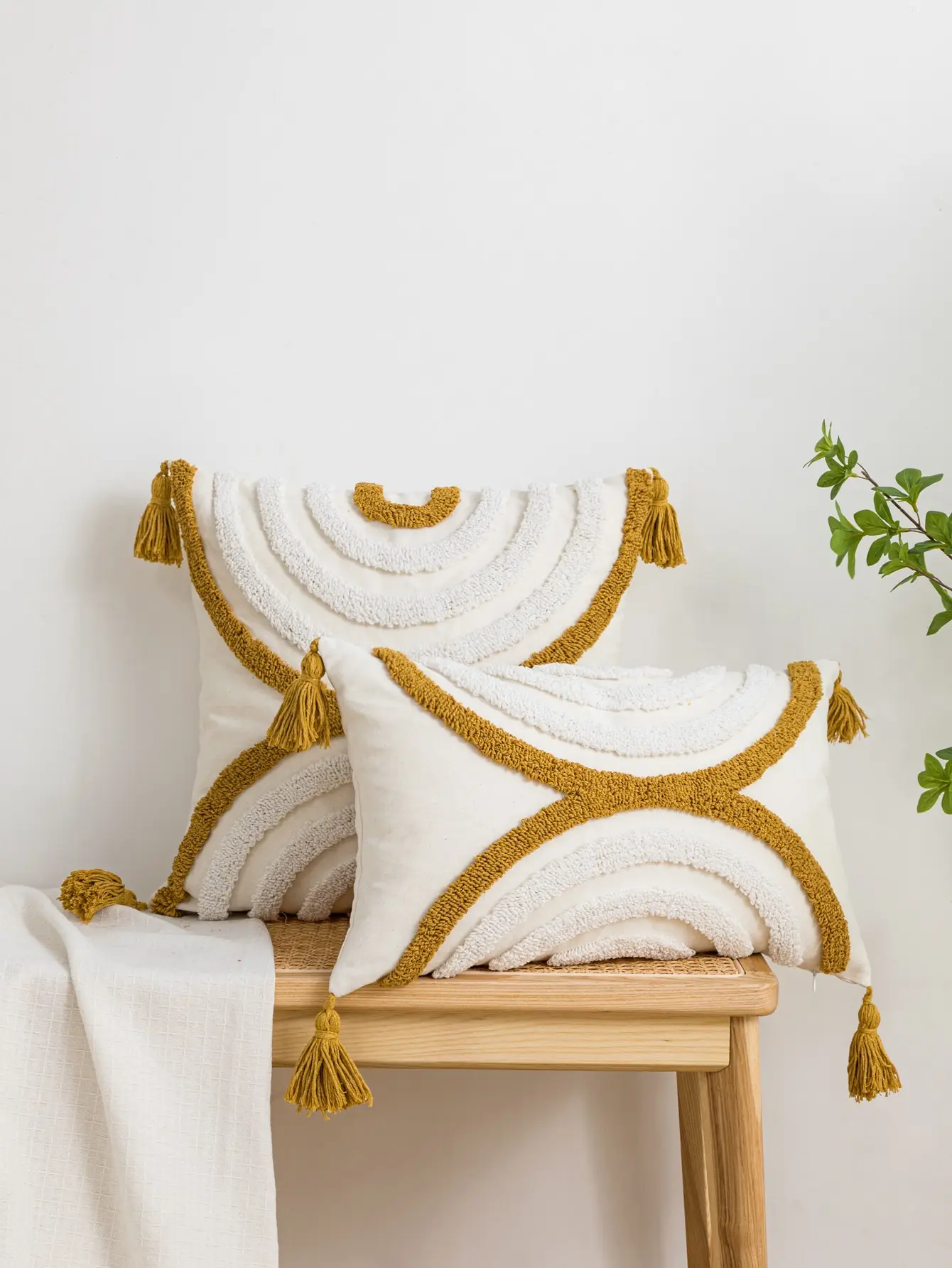 Juste de coussin à motif d'arc géométrique jaune, voile de coton, style bohème, adaptée aux canapés, salons, chambres à coucher, lits, 1 pièce