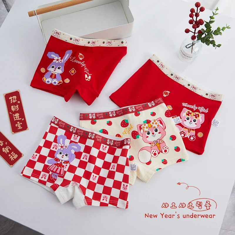 Sous-vêtements en coton fin pour filles, culottes imprimées mignonnes, caleçons respirants, doux et sains, boxer pour filles, taille 3-10T, 4 pièces par lot
