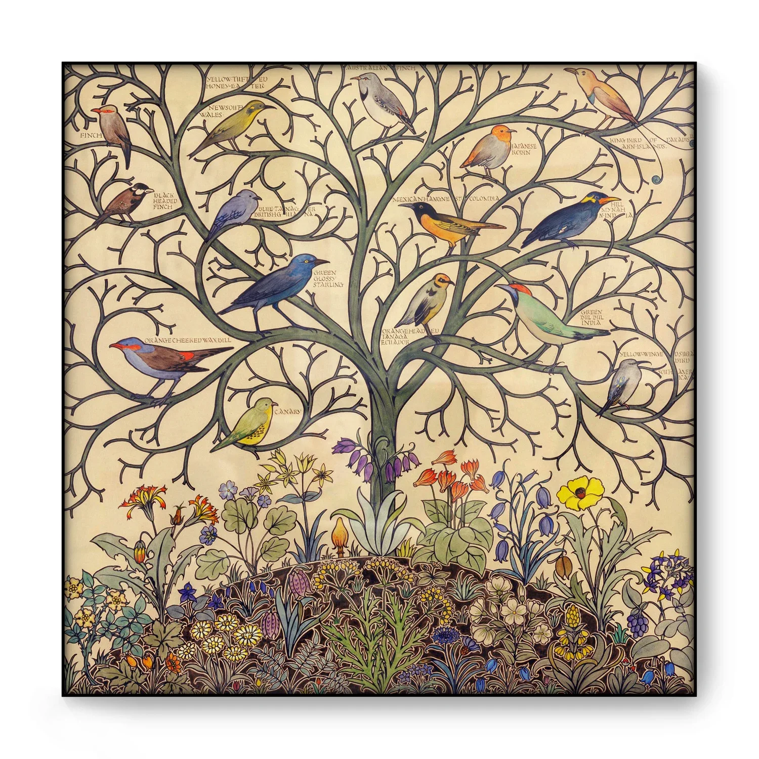 Impression sur toile d'oiseaux chanteurs tropicaux, arbre de vie, affiche vintage, peinture sur toile, art mural antique, oiseaux de la nature, photo