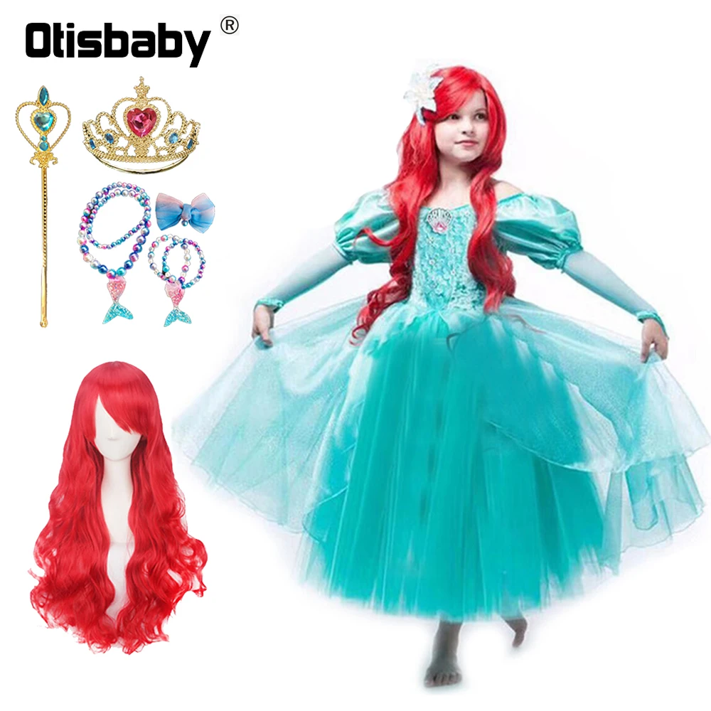 Costume de petite sirène pour nouvel an, robe de princesse Ariel pour enfants, à manches bouffantes, verte, pour anniversaire, Halloween