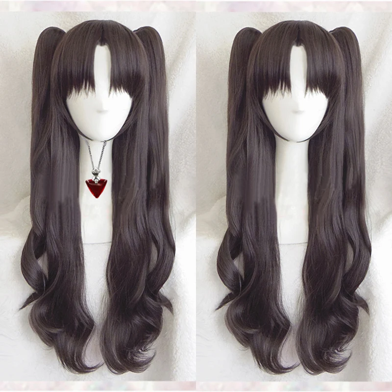 Destin/séjour nuit Rin Tohsaka longue ondulée marron queue de cheval résistant à la chaleur cheveux Cosplay Costume perruque + collier rubis en option