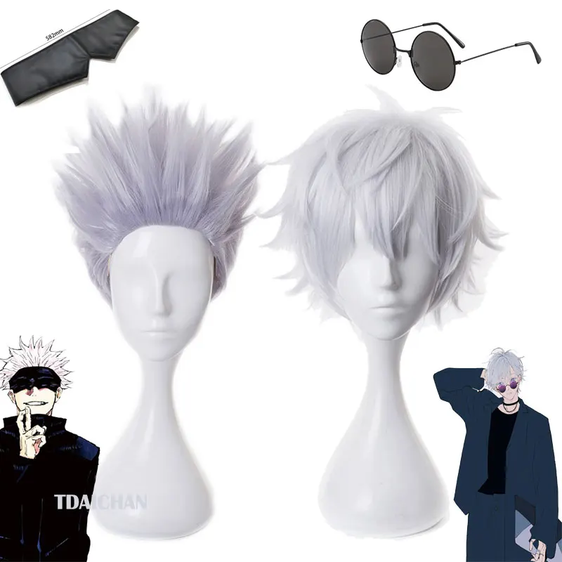 Gojo Satoru Cosplay perruques Anime Gojo cheveux synthétiques courts résistants à la chaleur avec bonnet de perruque perruque de fête sans Patch pour les yeux