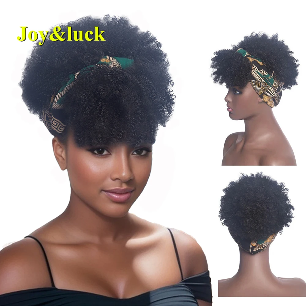 Perruque Synthétique Courte Afro Crépue et Bouclée pour Femme Noire, Turban Africain, Cheveux Ronds
