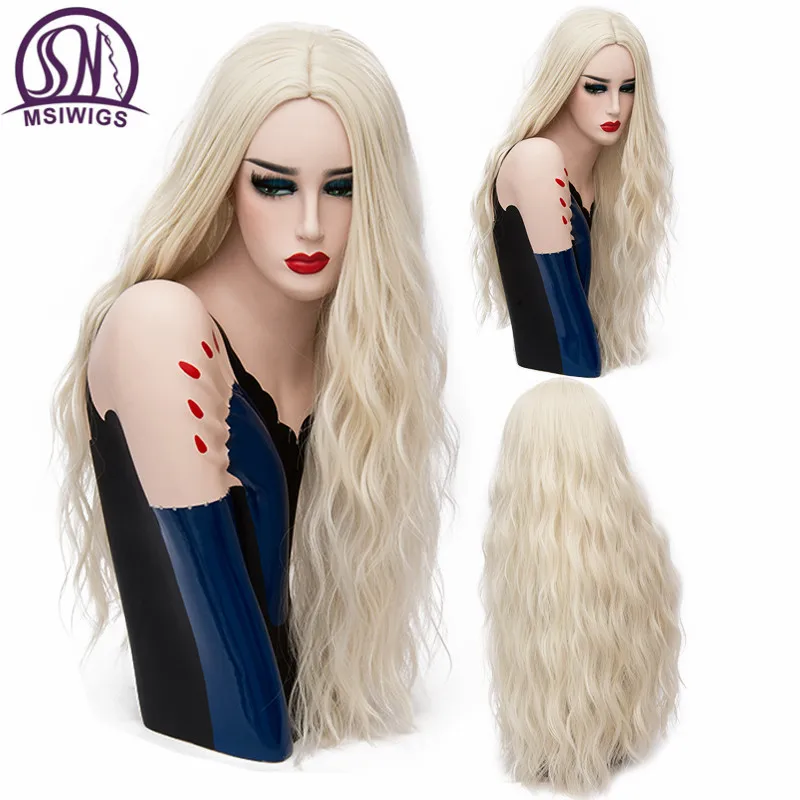 MSIWIGS-Perruques Cosplay Lolita Synthétiques pour Femme, Perruque Blonde, Cheveux Longs, Rose Ondulé, Degré de Chaleur, 29 Couleurs, 70cm