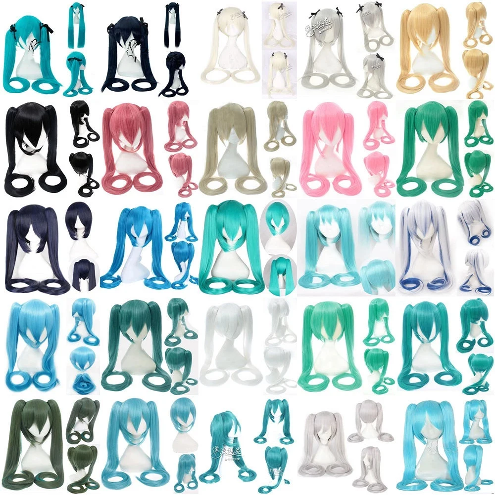 28 couleurs Miku Cosplay perruque longue résistant à la chaleur synthétique pince à cheveux queues de cheval perruques + bonnet de perruque