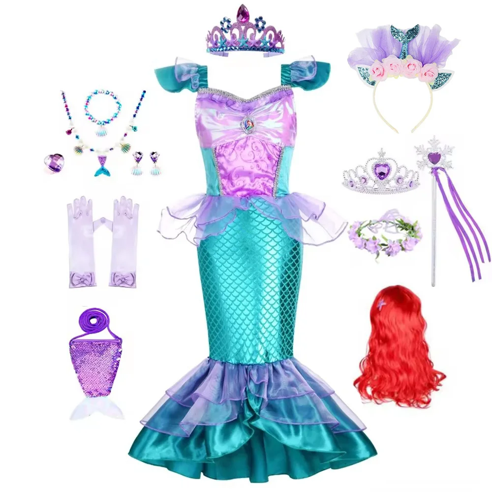 Robe de Princesse Petite Sirène pour Fille, Costume de ixde Barrage, Carnaval, Anniversaire, Cosplay, Halloween