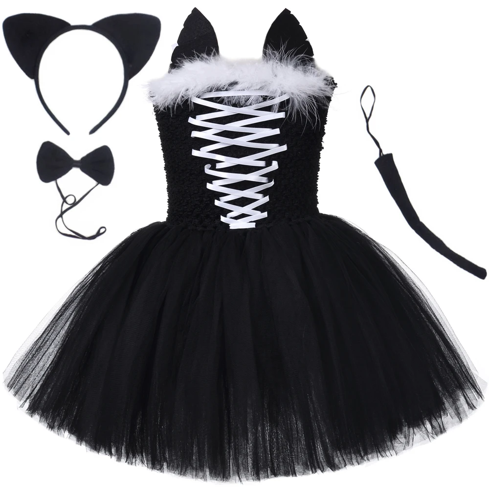 Robe Tutu noire pour filles, costume de carnaval d'halloween pour enfants, tenue Cosplay d'animal en bas âge pour fête d'anniversaire, ensemble de vêtements