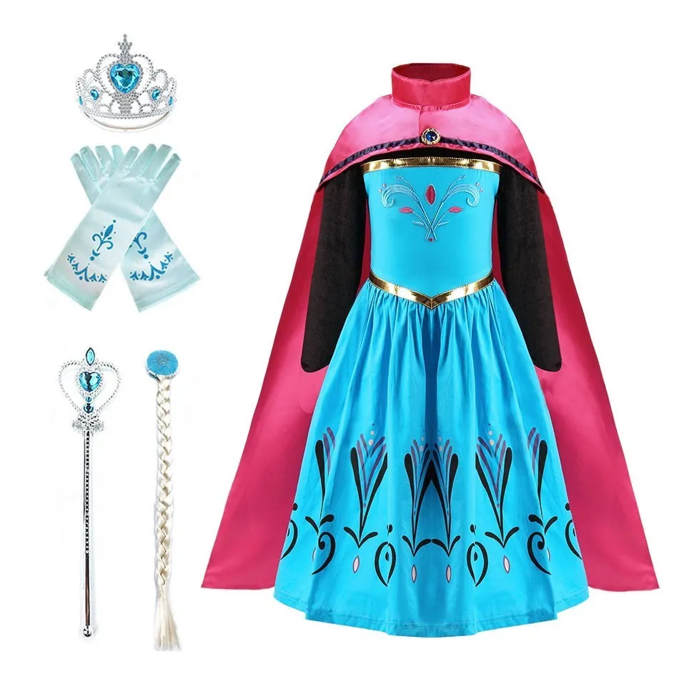 Costumes d'halloween pour enfants, robe Anna pour petites filles, Costume de Cosplay reine des neiges Anna, robe de princesse pour filles de 3 Ă 10 ans