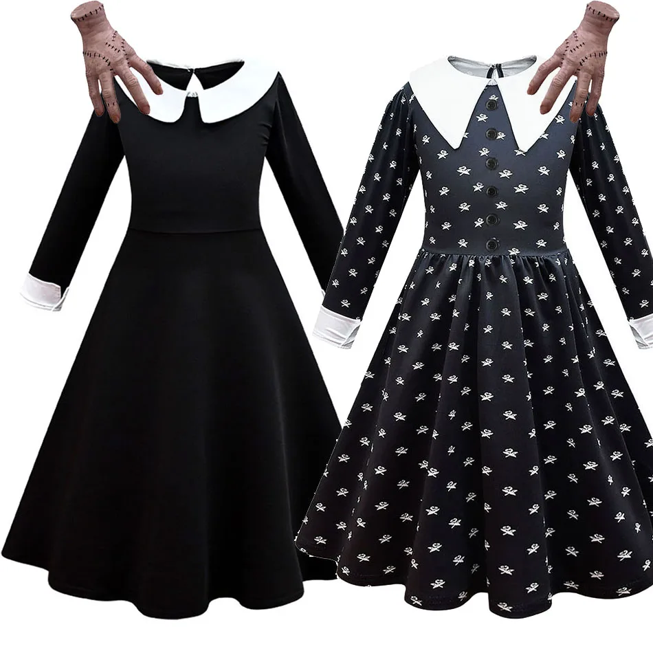 Costume gothique noir pour filles, vĂŞtements de danse addam pour enfants et adolescents, Robe de Cosplay d'halloween