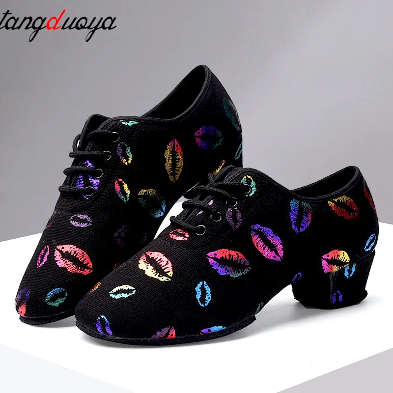 Chaussures de danse à talons hauts baskets femmes salle de bal chaussures de danse latine femme noir chaussures de danse à bout fermé pour femmes imprimé lèvres