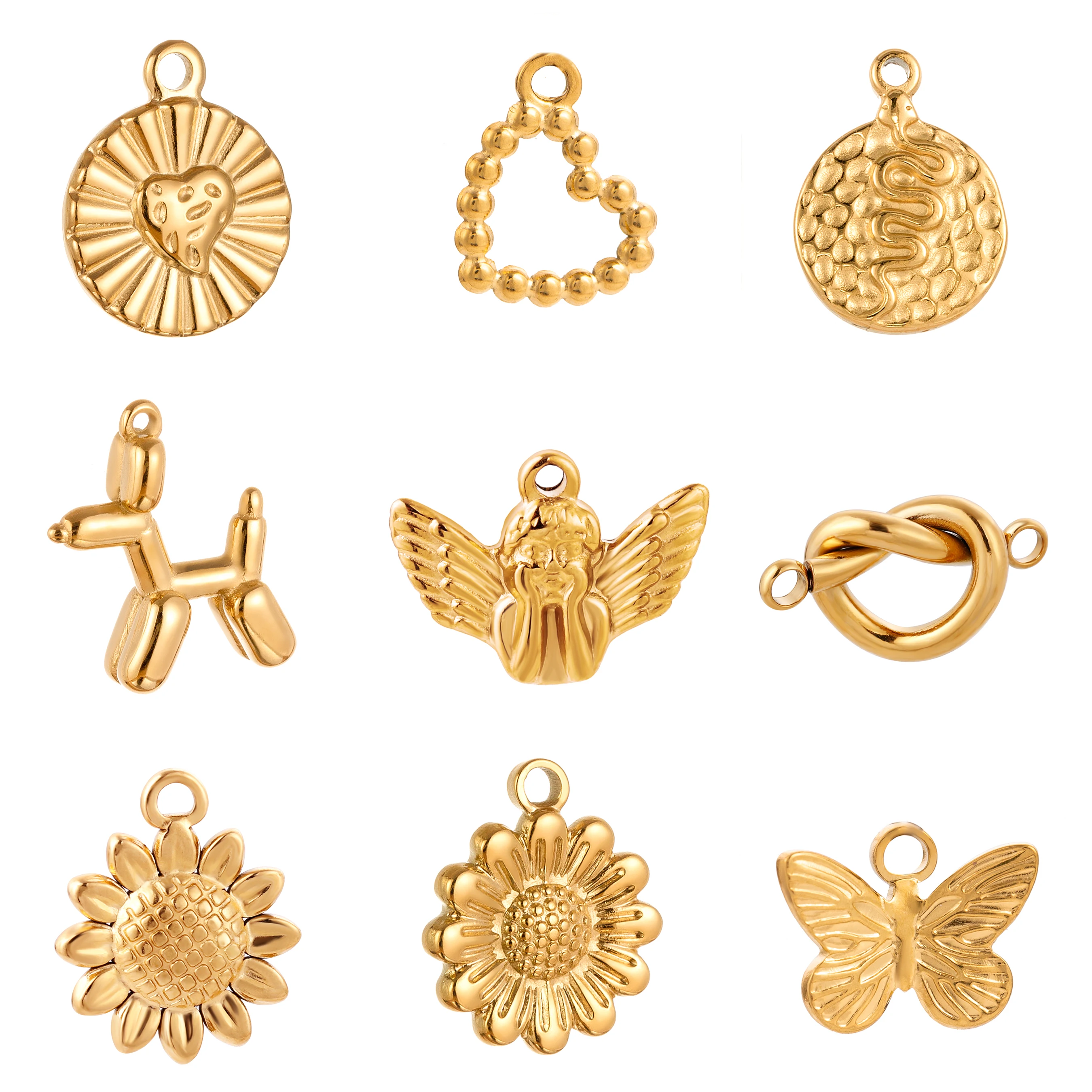 Breloques en forme de cœur, papillon, tournesol, serpent, chien mignon, fournitures pour la fabrication de bijoux, collier, boucles d'oreilles, Bracelet, 3 pièces