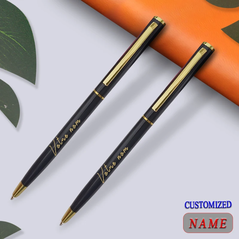 Stylo à bille personnalisé avec texte couleur or, sculpture en métal, fournitures de papeterie, accessoires scolaires et de bureau, enseignant d'écriture, bon marché, 2025