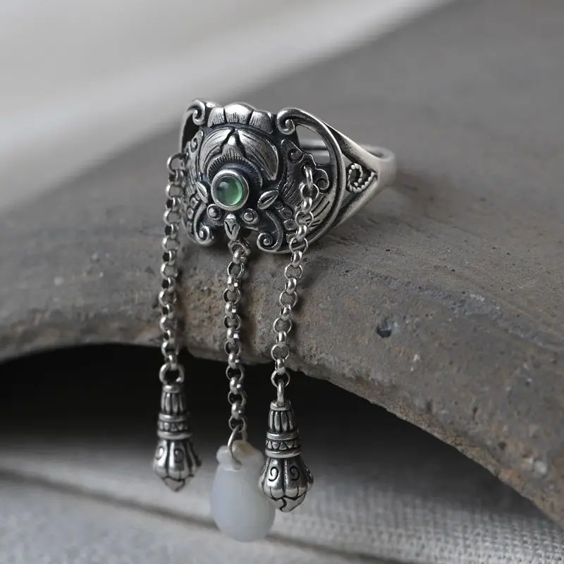 Bague d'ouverture avec pompon en argent thaïlandais, jaspe Hetian naturel, chauve-souris, rétro, artisanat de styliste, breloque de luxe légère, bijoux de marque pour femmes