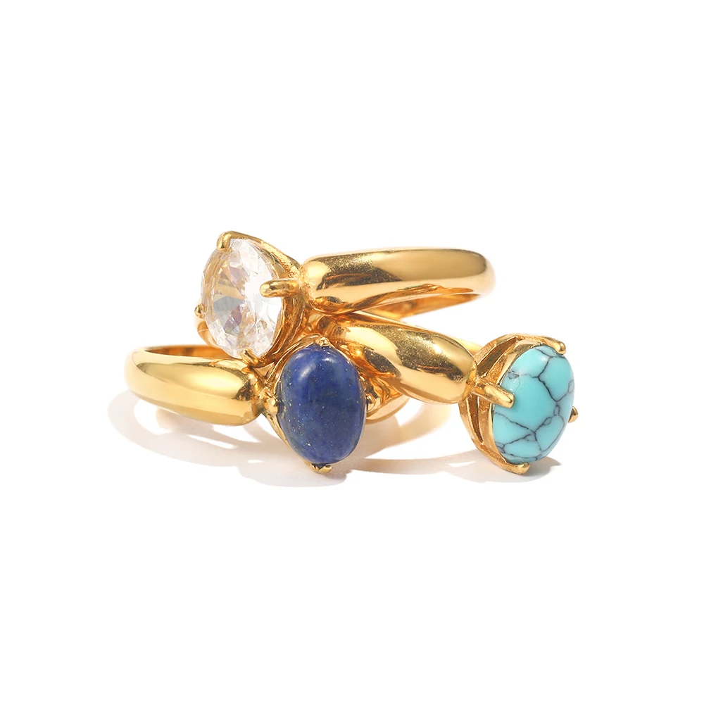 Bague Minimaliste en Acier Inoxydable Plaqué Or pour Femme, Pierre Naturelle, Turquoise, Cubique, Contre-indiqué