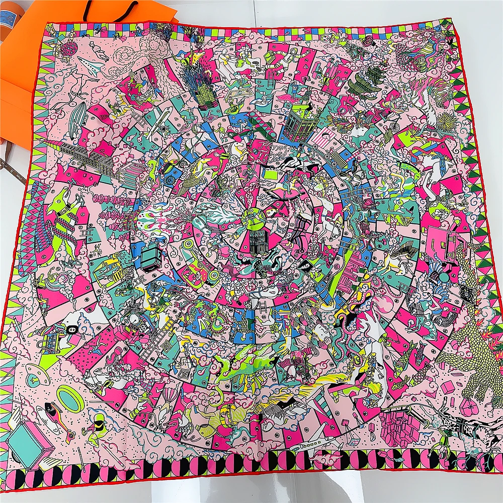 Célèbre peinture à l'huile sergé 100% foulard en soie mode Bandana femmes écharpe enveloppes 53cm foulards carrés Hijab foulard foulard