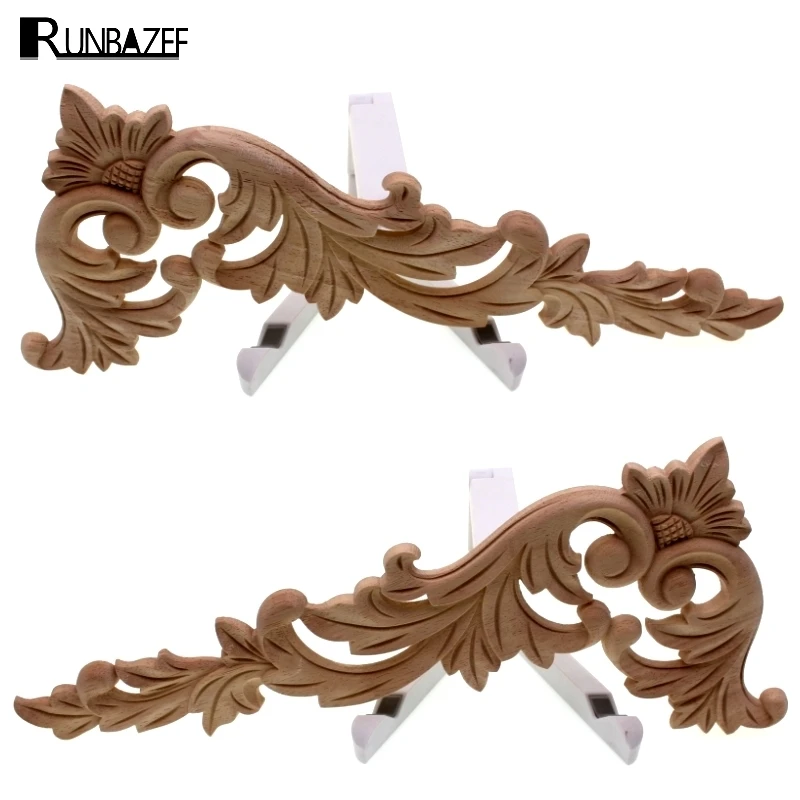 RUNBAZEF Applique d'angle sculpté en bois Floral sculpture en bois décalcomanie meubles armoire porte cadre mur décoration de la maison accessoires