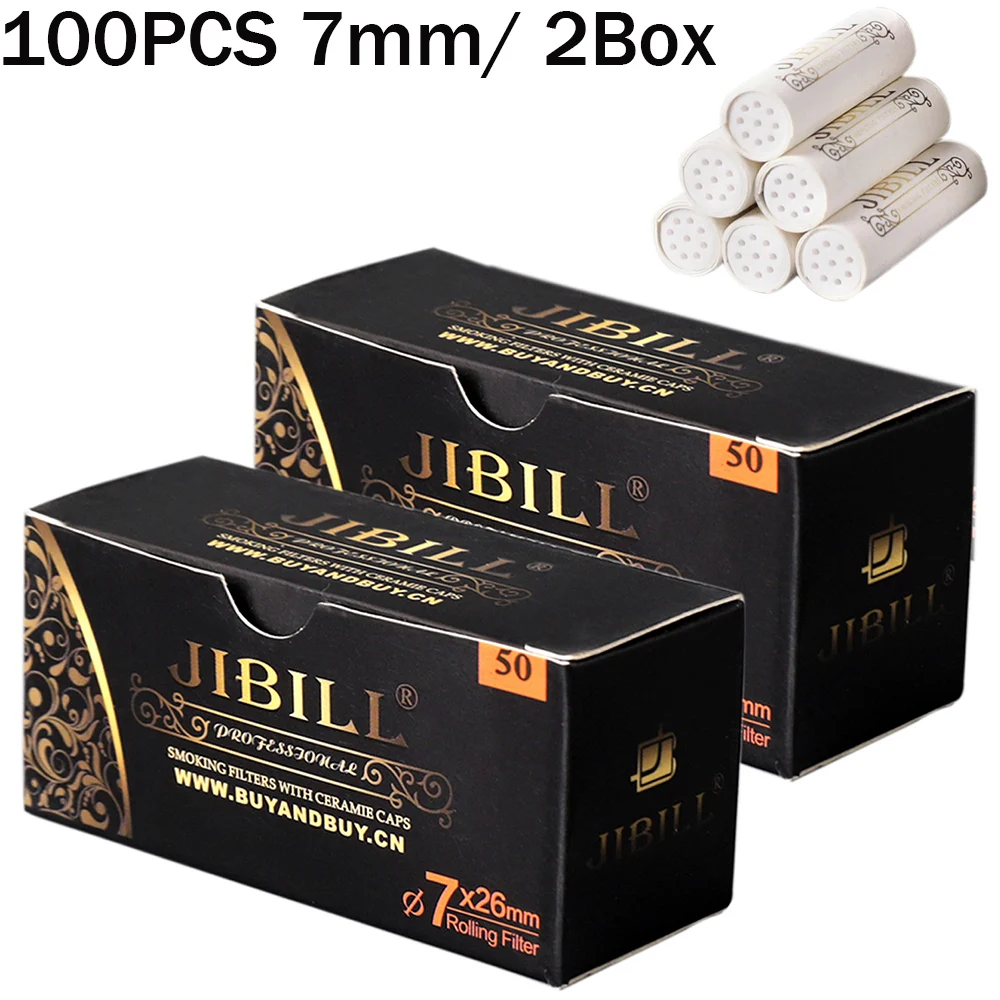 JIBILL 100 pièces/2 boîtes 7mm filtre à charbon actif pour tuyau à tabac, capuchon en céramique Double face, élément filtrant jetable pour fumer