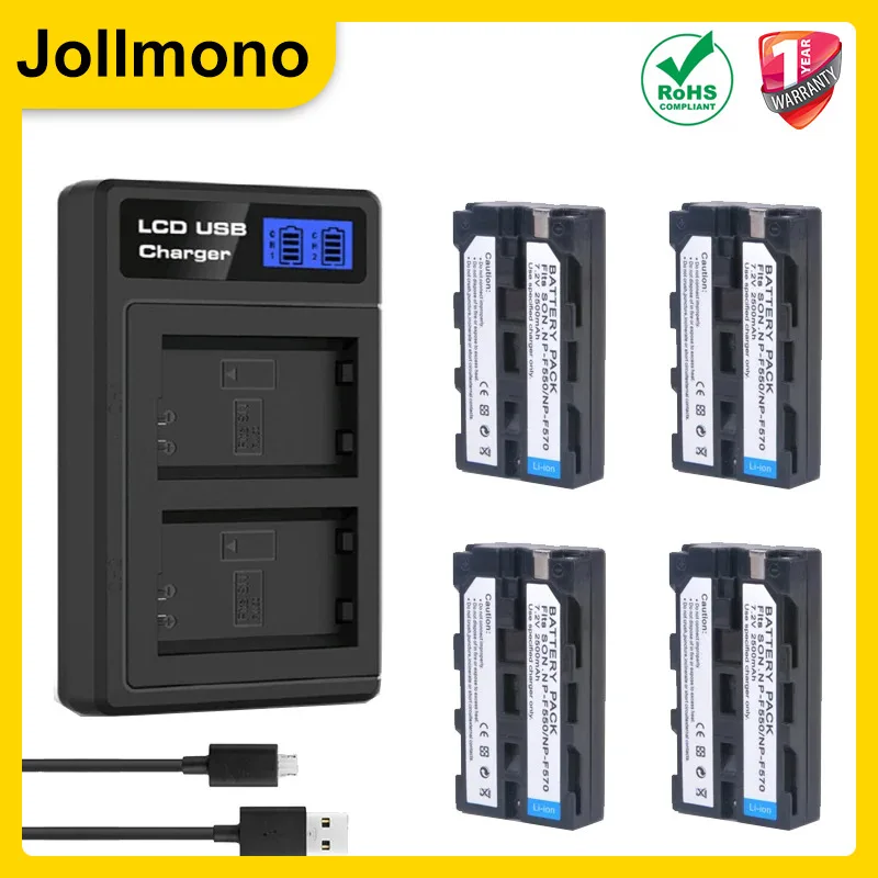 Batterie d'appareil photo 2600mAh NP-F550 NP-F330 NP F550 NP F330 + chargeur LED adapté aux lumières de caméra Sony NP-F550 NP-750