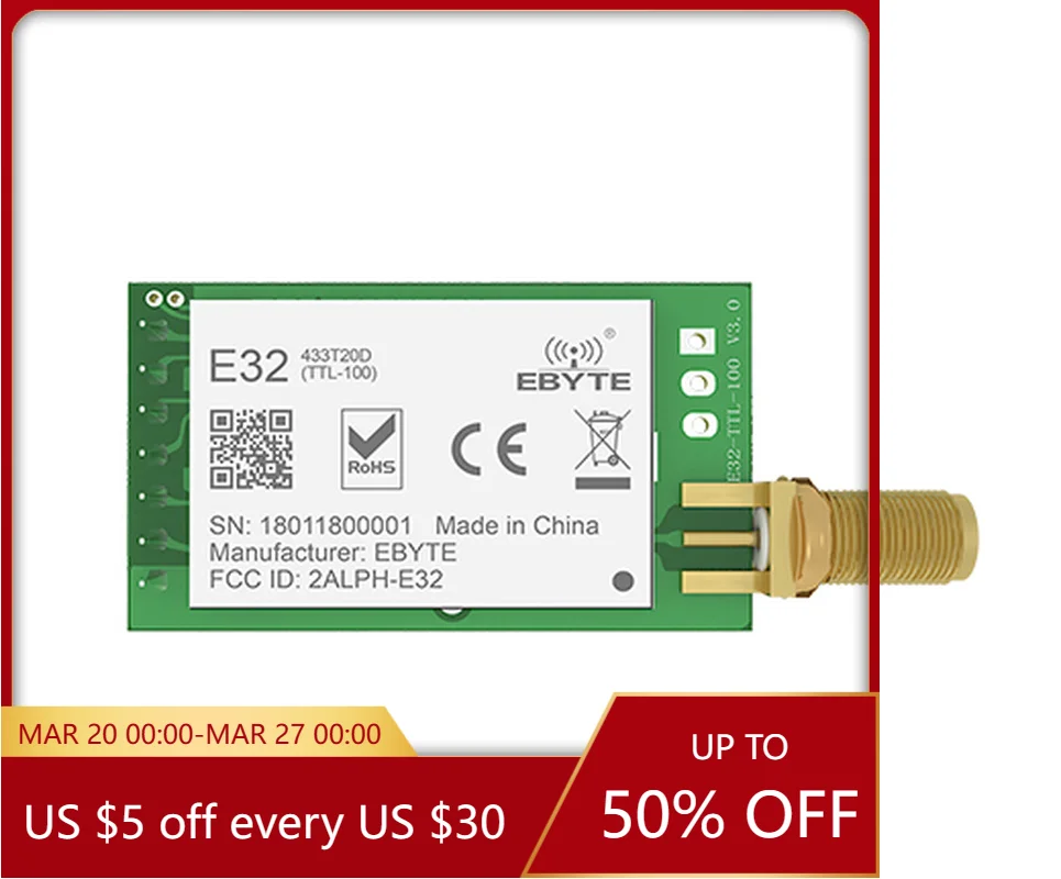 Module sans fil LoRa 170 433 868 915M, série CDSENET E32, carte de Test UART SMD 20-37dbm, longue portée, faible puissance, réveil d'air 20-37dbm