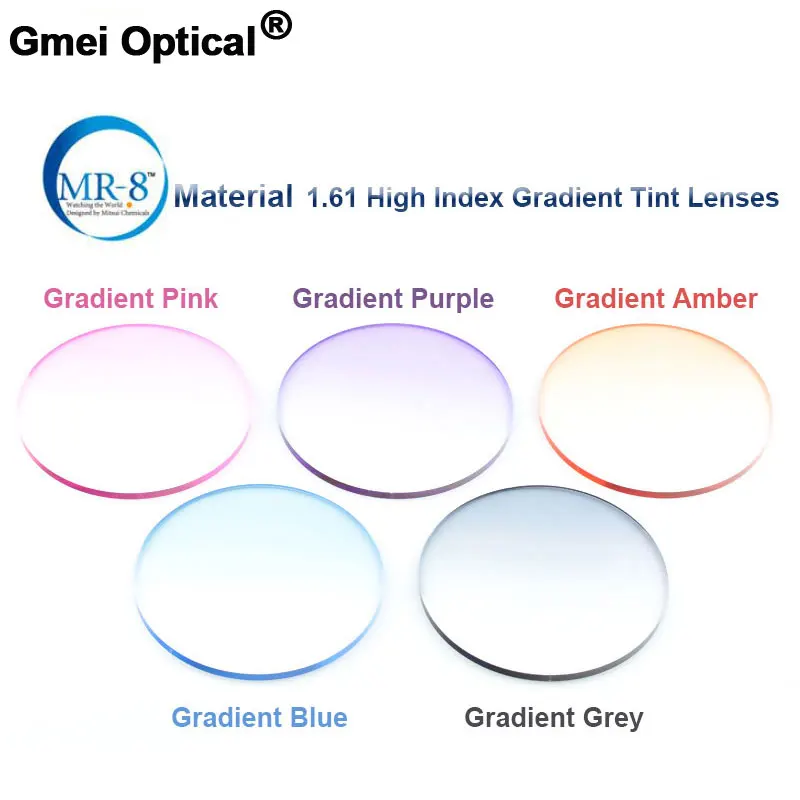 Protection contre les radiations 1.61 indice élevé MR-8 teinte dégradée Super résistante HMC EMI asphérique Anti UV myopie hypermétropie verres de Prescription