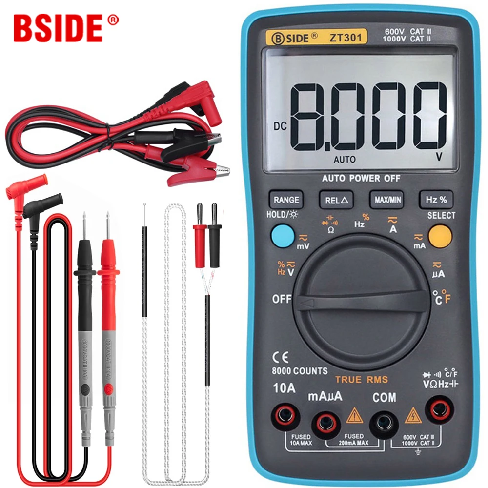 BSIDE-Multimètre numérique à plage automatique True RMS 8000, haute précision, ampèremètre, voltmètre, puzzles intelligents, température, testeur NCV Ohm Hz