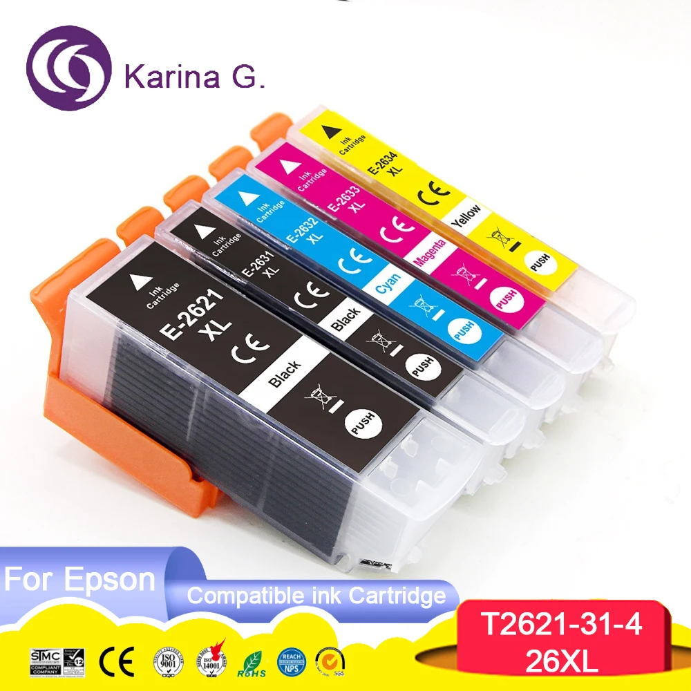 Cartouche d'encre pour Epson, 26XL, compatible pour T2621, T2631 Ă T2634, XPouvriers, XP520, XPfemale XP605, XP610, XP615, XP620, XP625, XP700, etc.