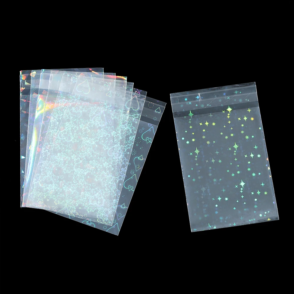 Sac en plastique auto-scellant au Laser, 50 pièces, sac à bijoux holographique coloré pour collier, Bracelet, bijoux, emballage cadeau, sacs de rangement
