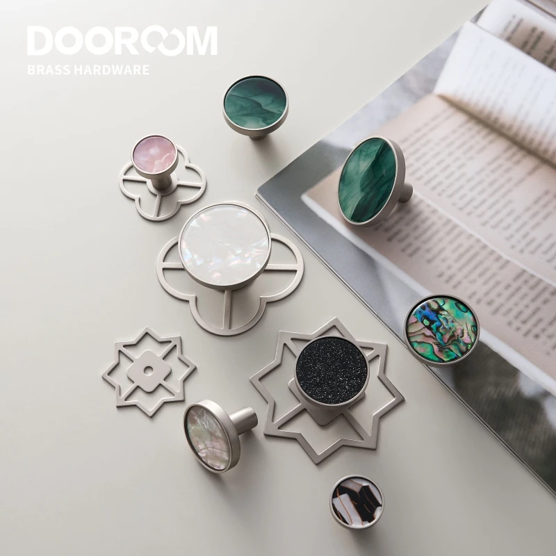 Dooroom – poignées de meubles en laiton, coquille colorée, Nickel brossé mat, crochets argentés, armoire, commode, armoire, tiroir