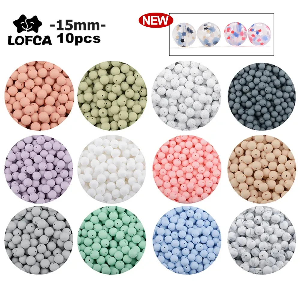 LOFCA 10 pièces 15mm perles de dentition en Silicone 15mm anneau de dentition bébé collier d'allaitement attache-sucette soins bucco-dentaires sans BPA de qualité alimentaire coloré