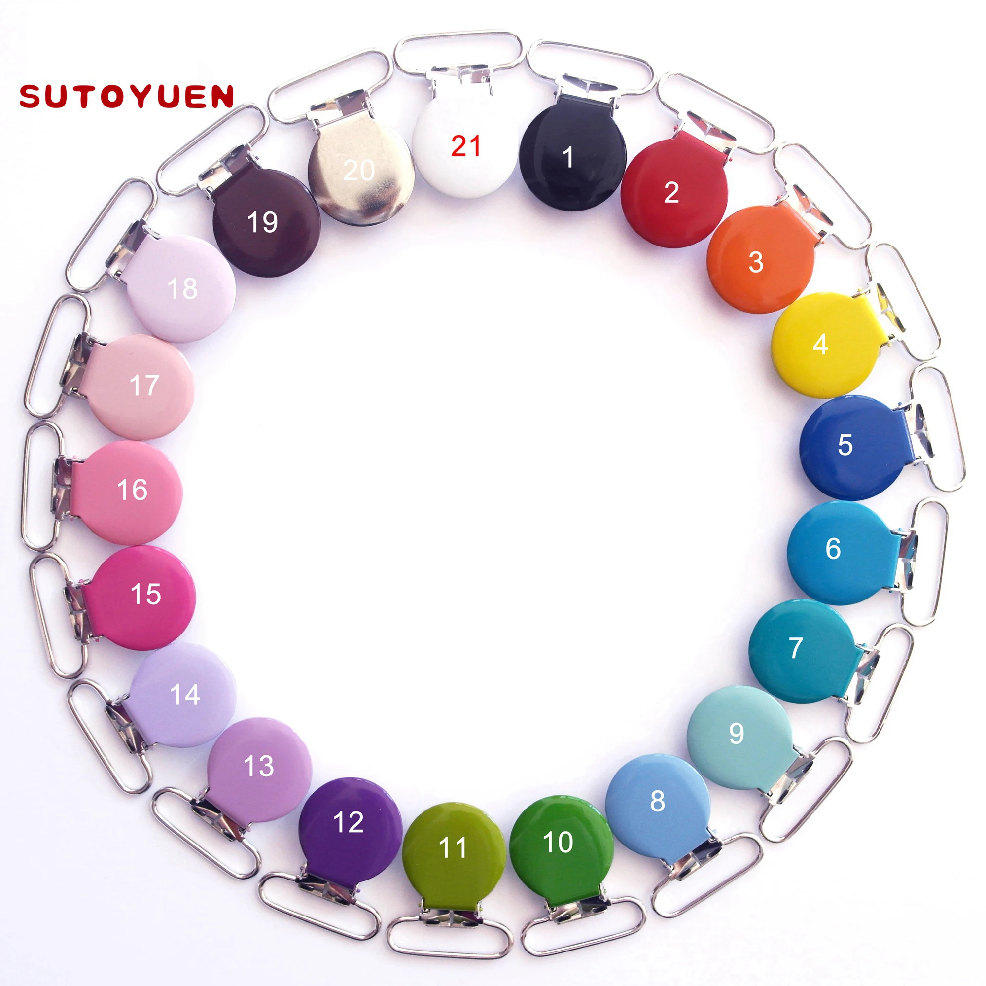 SUTOYUEN-Attache-sucette en métal pour bébé, 30 pièces/lot, 1 en effet 25mm, porte-sucette rond, sans plomb