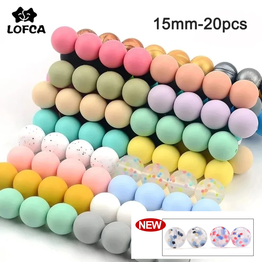 LOFCA 15mm 20 pièces perles de Silicone de qualité alimentaire silicone anneau de dentition perles rondes bébé à croquer perles de dentition silicone anneau de dentition pour bricolage